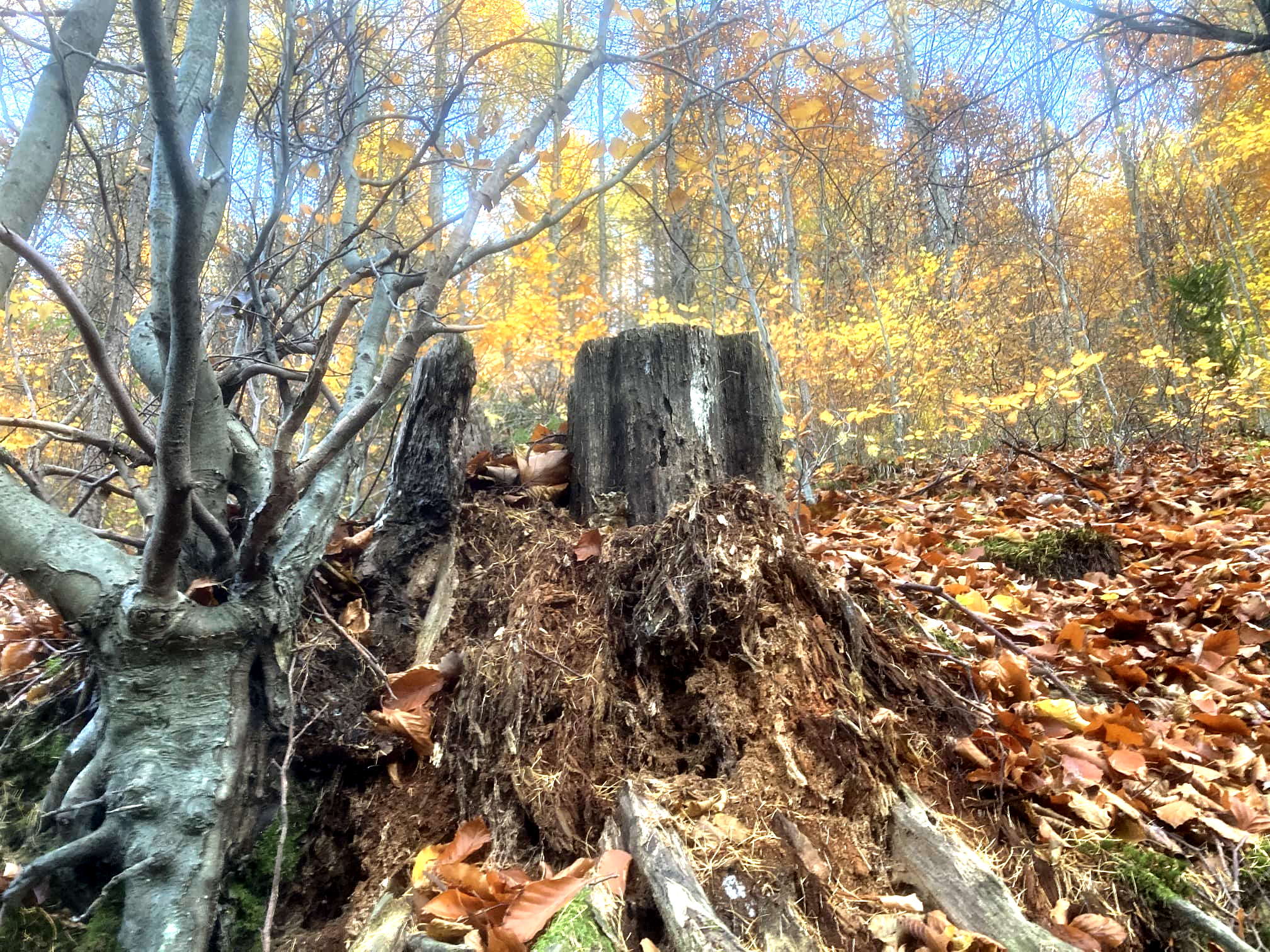 Robert G. für seinen „Leseplatz“ am Baumstumpf im Herbstwald.